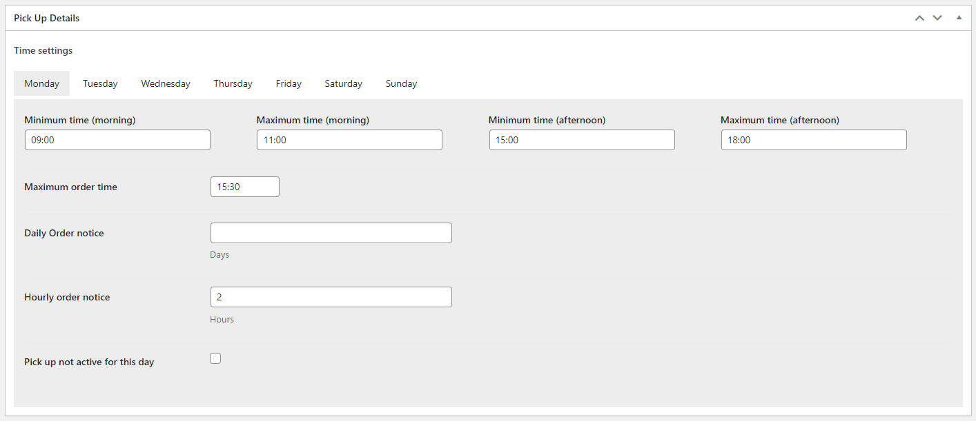 Il nome è un campo obbligatorio e apparirà nel corpo delle email che verranno inviate agli utenti che completano un ordine, oltre che nella pagina di Pick up.