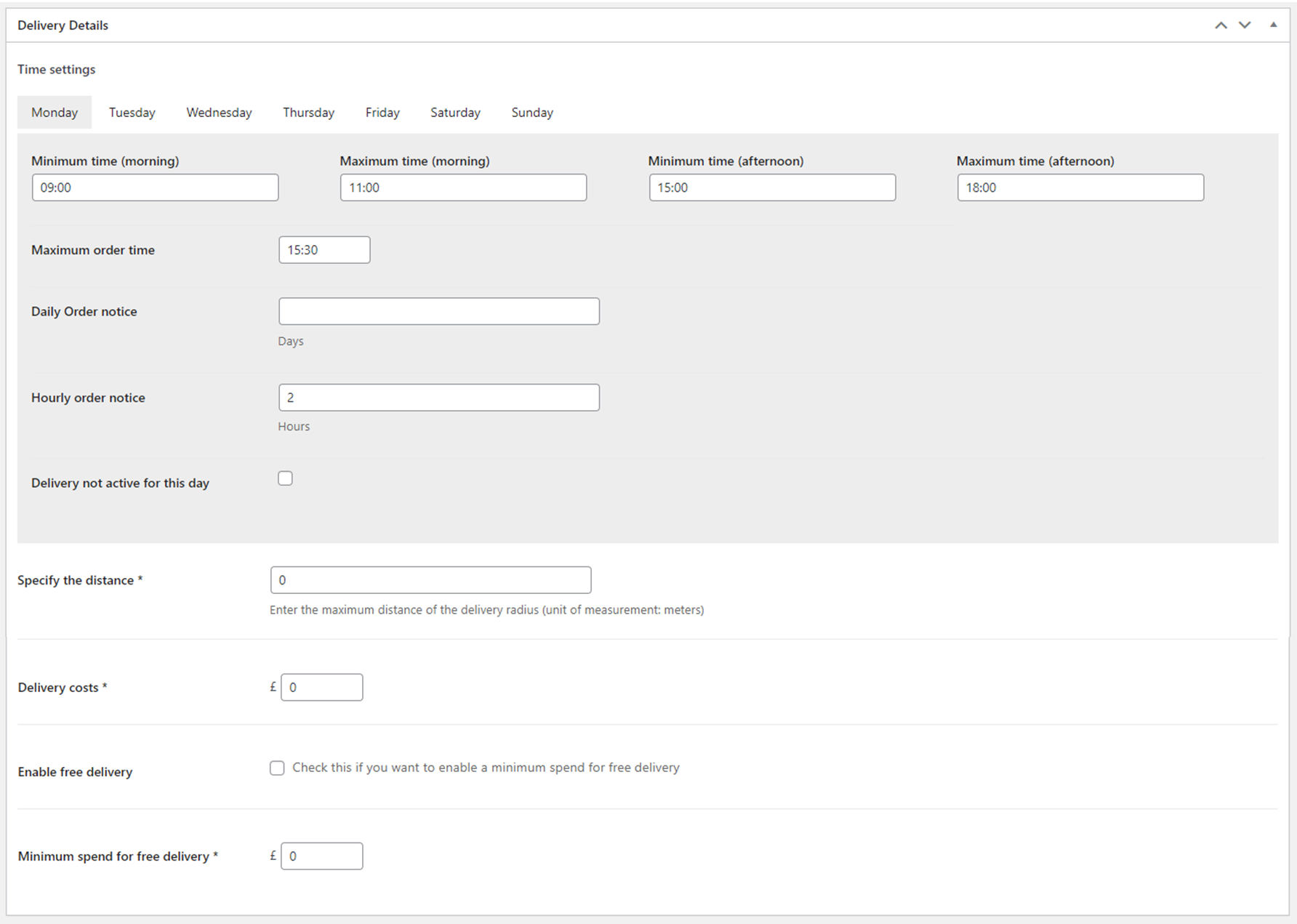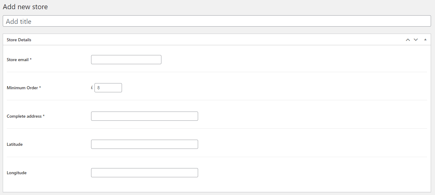 Nella sezione Store Details andranno inseriti i recapiti dello store, l’importo per il minimo d’ordine, l’indirizzo dello store e la posizione in coordinate (le quali possono essere recuperate su Google Maps).