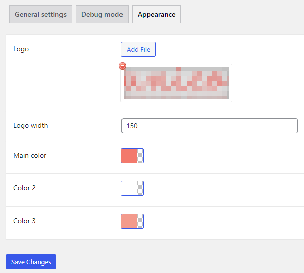 Si possono selezionare il logo dell’azienda e scegliere una dimensione in pixel (Logo width) e selezionare i tre colori principali del brand.