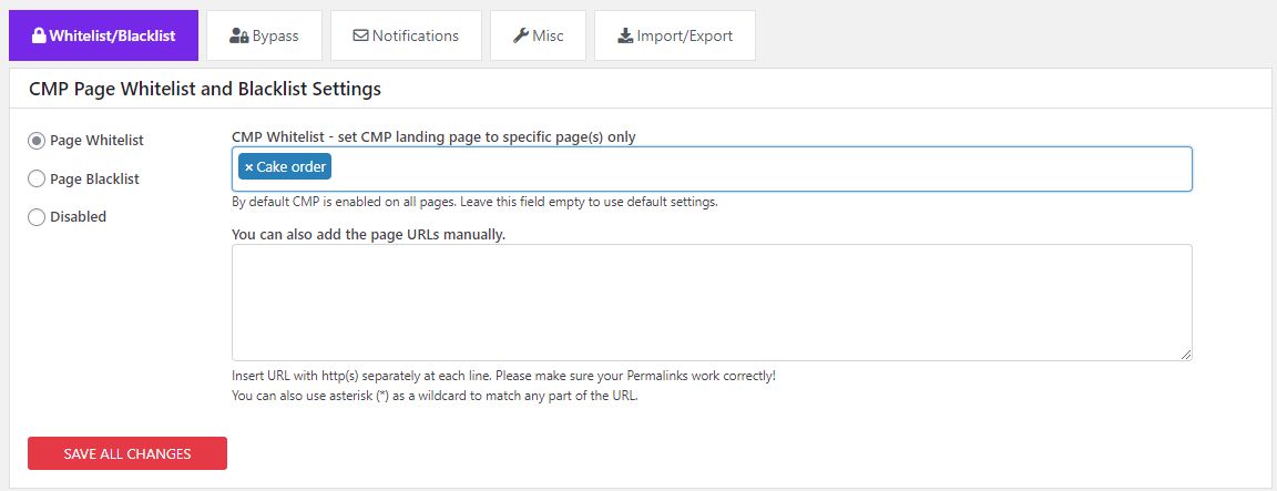 Se si abilitasse il CMP Status senza aver selezionato alcuna pagina in Advanced > Page Whitelist, l’intero sito verrebbe oscurato.